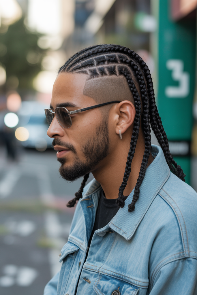 Braids remain one of the top trending hairstyles for Black men in 2025. Pairing box braids or cornrows with a fade creates a stylish, cultural, and unique look that stands out.